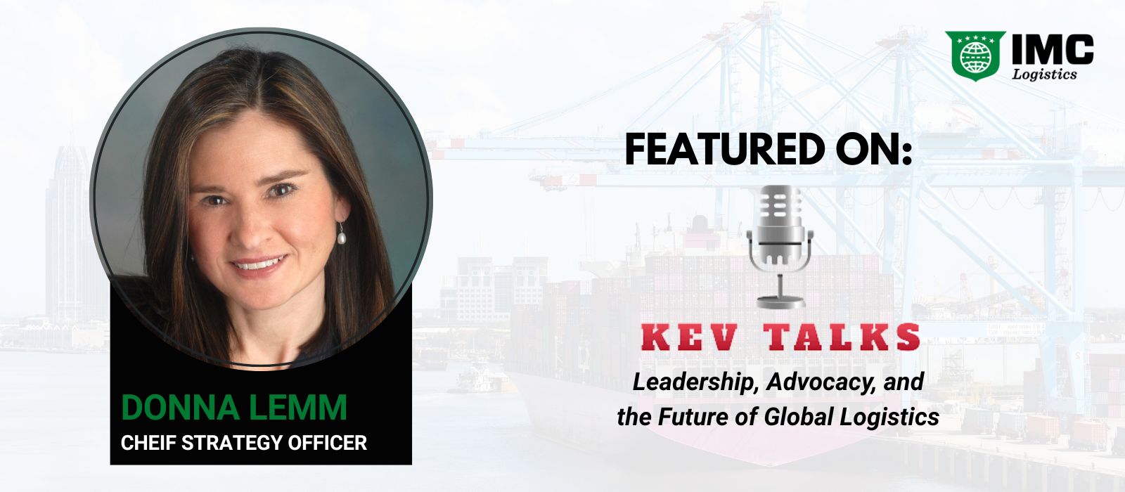 Donna Lemm, IMC Logistics’ Chief Strategy Officer reflects on her career journey, leadership philosophy, and the changing dynamics of the logistics industry on the Kev Talks podcast. They discuss leadership insights, operational expertise, and personal stories, inspiring female in the industry to lead with confidence, advocate for meaningful change, and embrace the future of global logistics. To watch the whole episode click HERE.